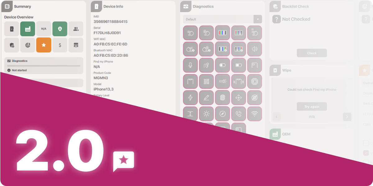 We’ve merged Quick Diagnostics and Full Diagnostics into one streamlined flow. Technicians can now test iOS devices much faster – with fewer clicks, no unnecessary navigation and a smoother overall experience.